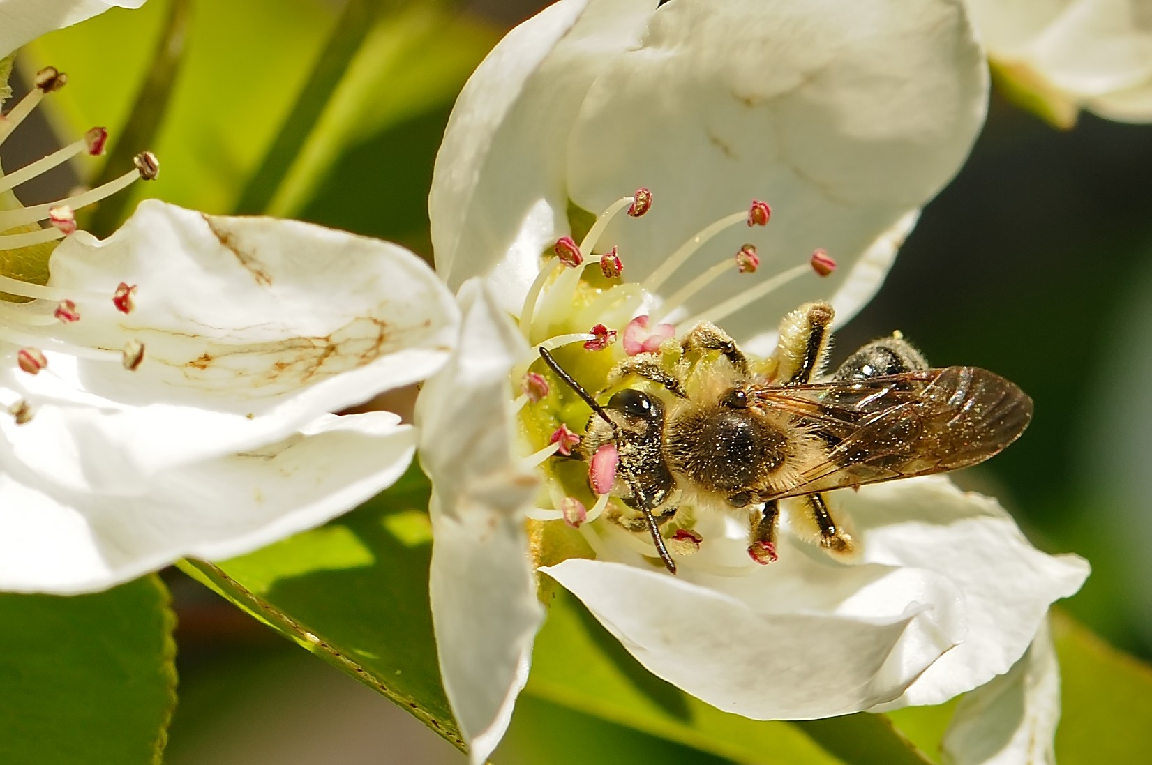 Mining bees are also called Adrenid bees because they belong to the family Adrenidae. There are over 1,200 different species of Adrenids in North America. These mining bees are superior pollinators in cool weather and are a perfect match for spring wildflowers, such as spring beauty (Claytonia virginica) and swamp buttercup (Ranunculus septentrionalis). This family of bees is one of the few pollinators of large-flowered trillium (Trillium grandiflorum) that you can see blooming now in high-quality woodlands throughout Lake County. Want to learn more about who pollinates what? Visit this great website about flower-visiting insects in Illinois.