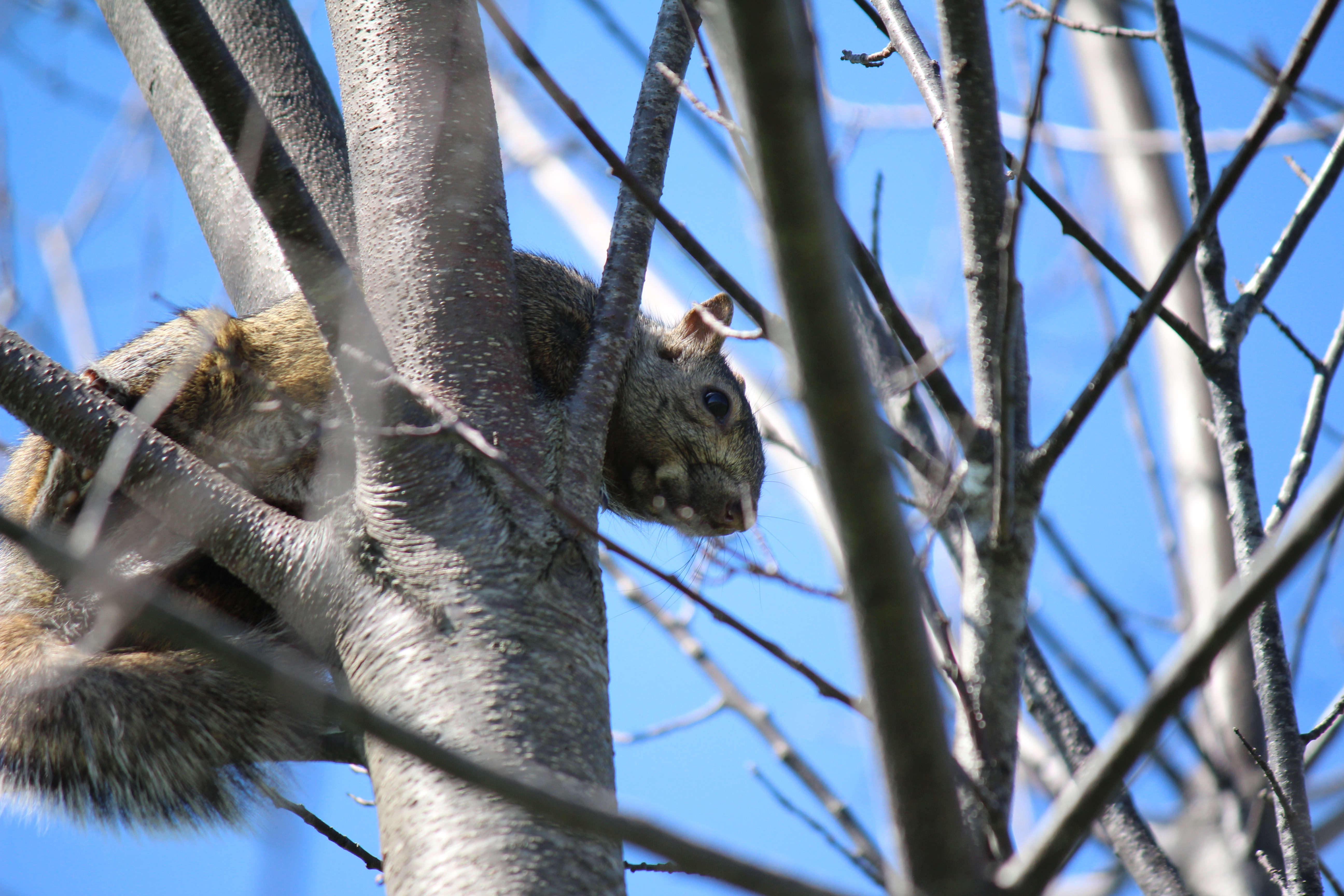 In the fork of a tree we discovered a gray squirrel that looked to be barely breathing. We stopped to speculate how it got there. Did it crawl up, seeking refuge after being injured and dropped by a marauding hawk?