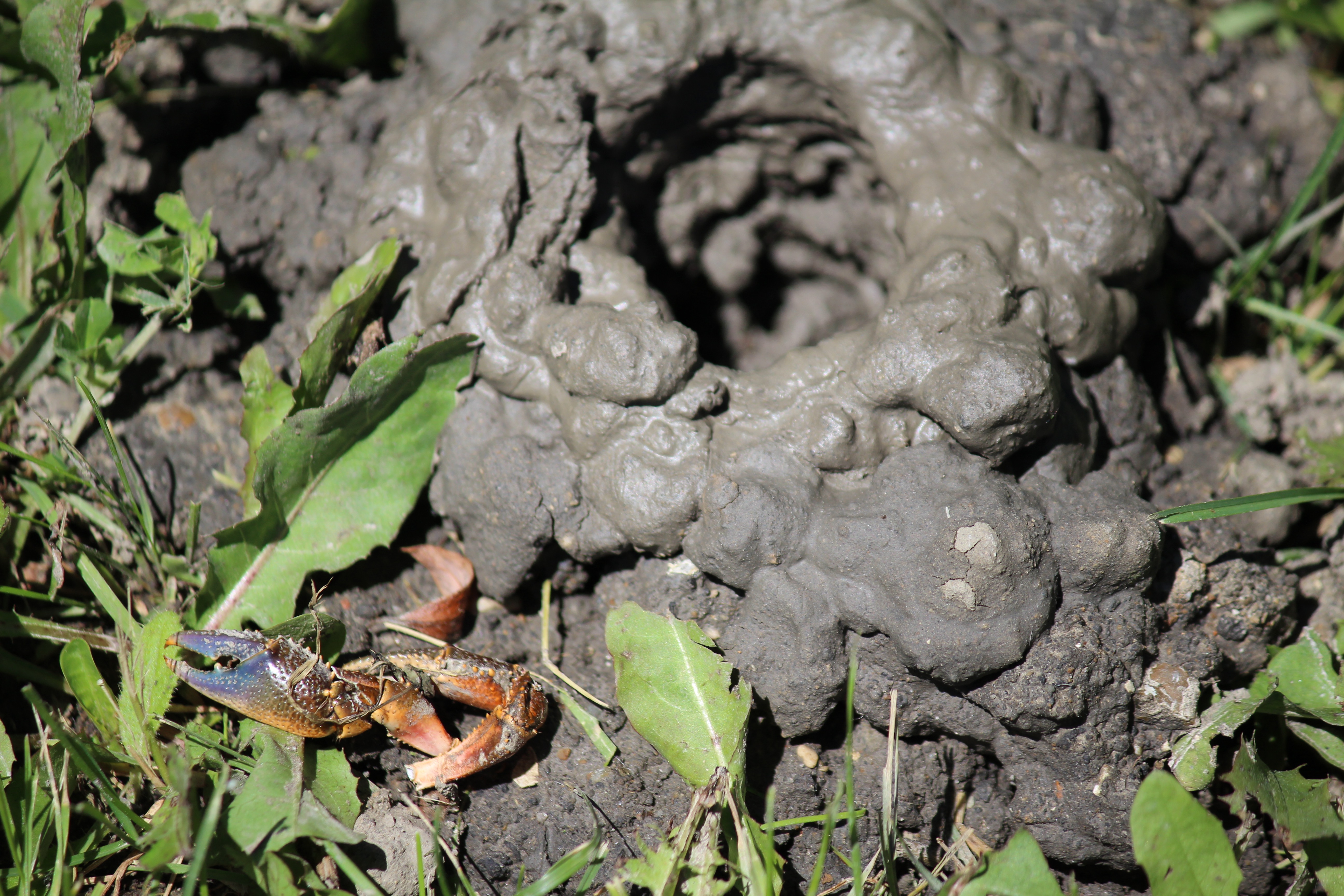 Perhaps he had just finished this crayfish snack that we found along the edge of the trail next to its home (known as a “turret”).