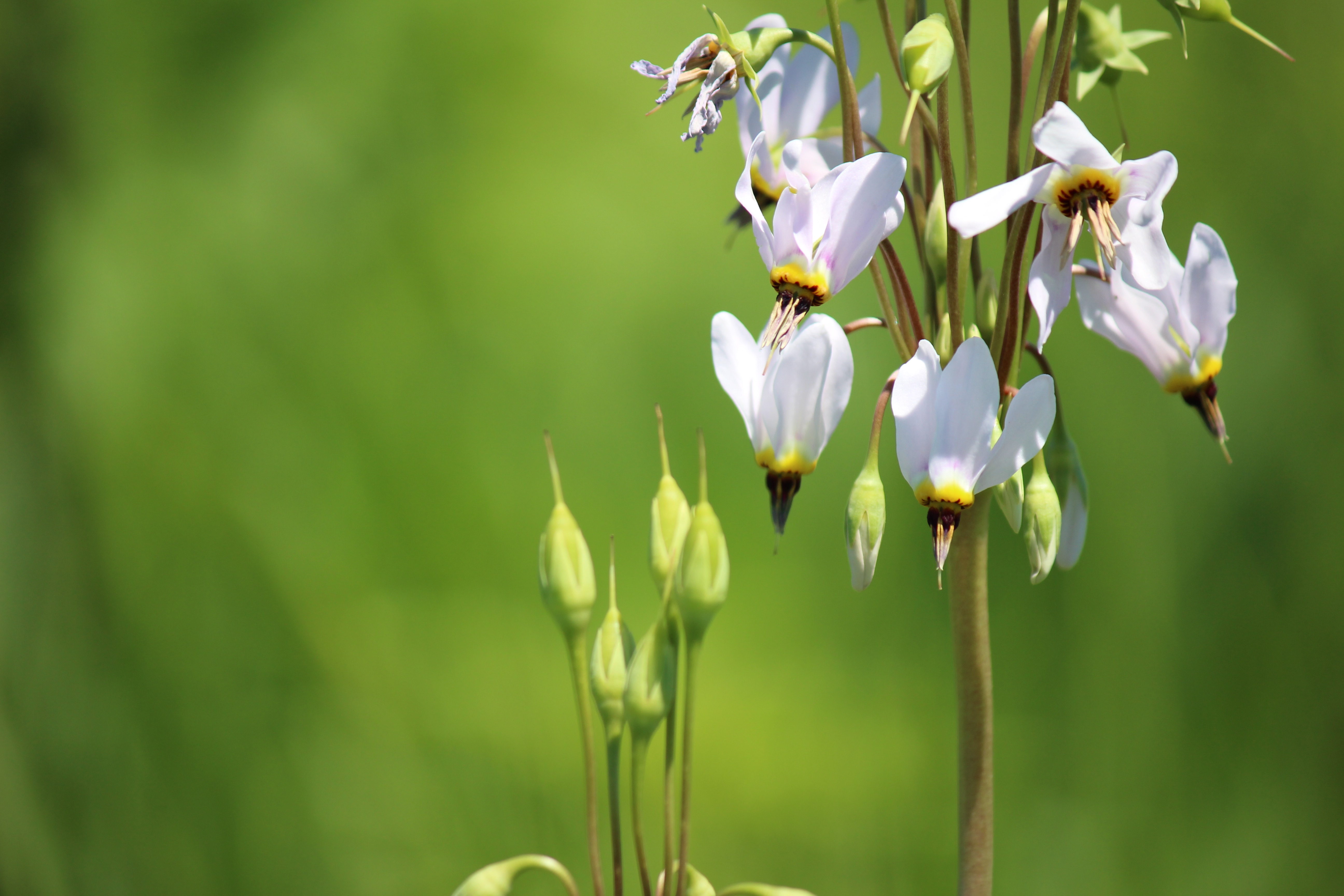 We stopped and watched as a fat queen bumblebee, seemingly weighed down by overfilled pollen baskets, lumbered from shooting star to shooting star. Though this wildflower offers no nectar reward for the bee’s effort, the flower does provide pollen. The bee vibrated its thorax rapidly to shake the dusty pollen loose, which also benefits the flower by what is called “buzz pollination.”