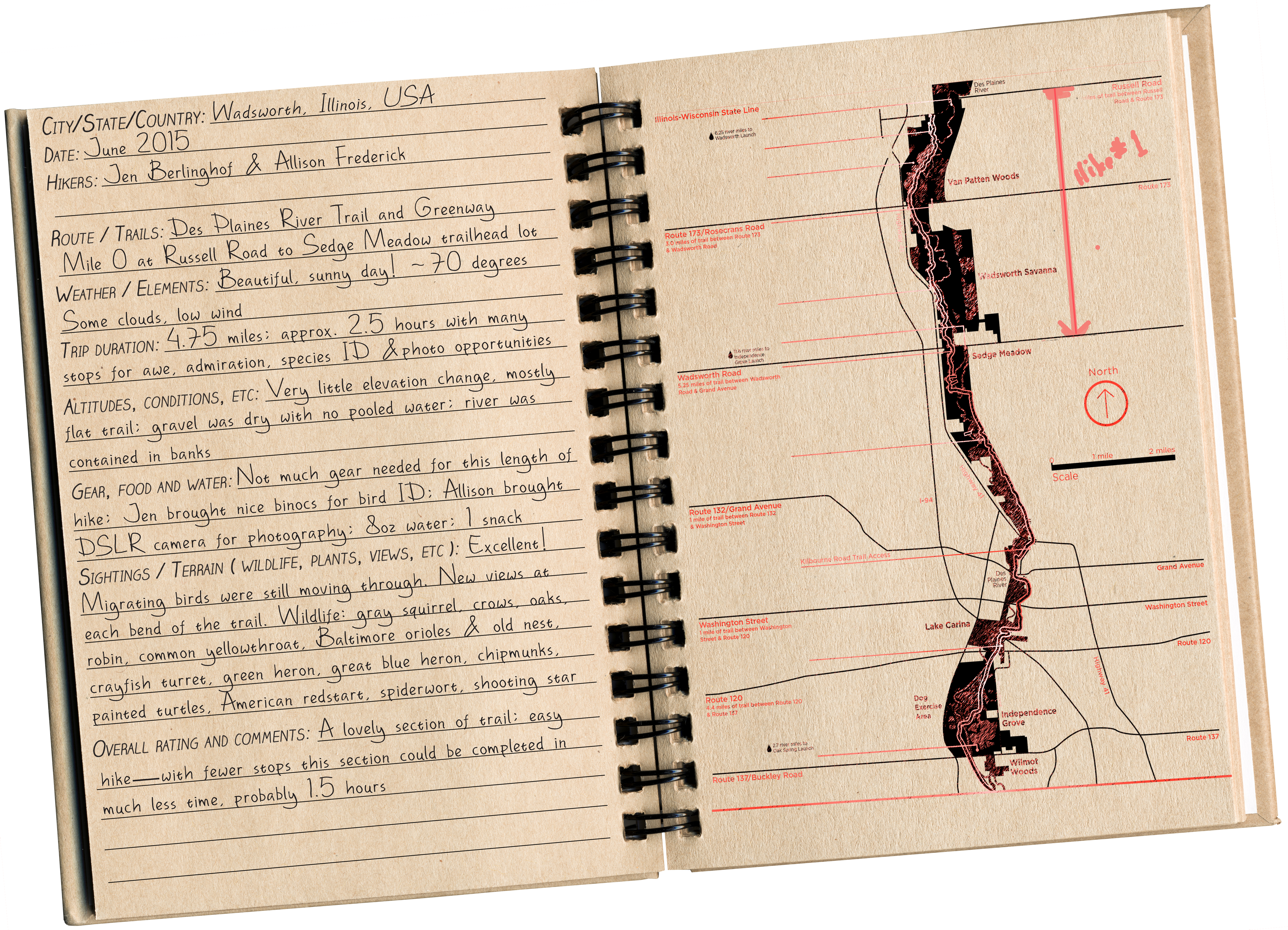 Forgot to respond to your question about the journal. Though it is just a personal field book and not available for purchase, I do hope to make our full notes available from our website after we complete the trail. We also hope to do similar notes for paddling the river. Stay tuned!