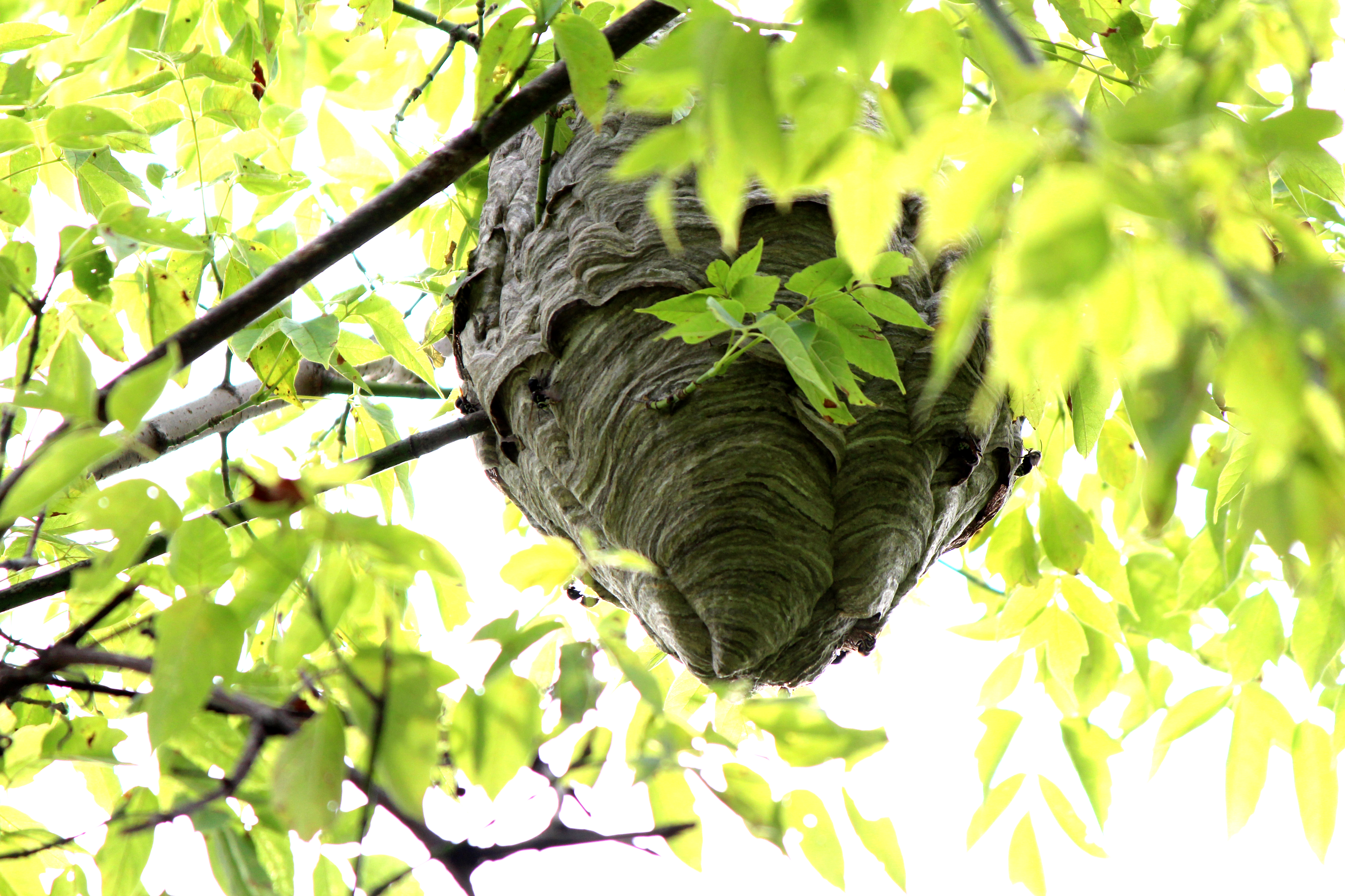 Only a few steps into our hike, we spied the architectural mastery of the bald-faced hornet high in a tree. These nests are constructed with paper-like material made from chewed wood fibers mixed with the hornets’ saliva. Bald-faced hornets build the inner nest with layers of paper cells that look like a honeybee’s comb. Those layers are then encased with a thick, layered outer shell. An opening at the bottom of the nest allows hornets to come and go easily. While a nest like this can house about 500 hornets during the spring and summer, it is abandoned come fall and is often destroyed by birds searching for food.