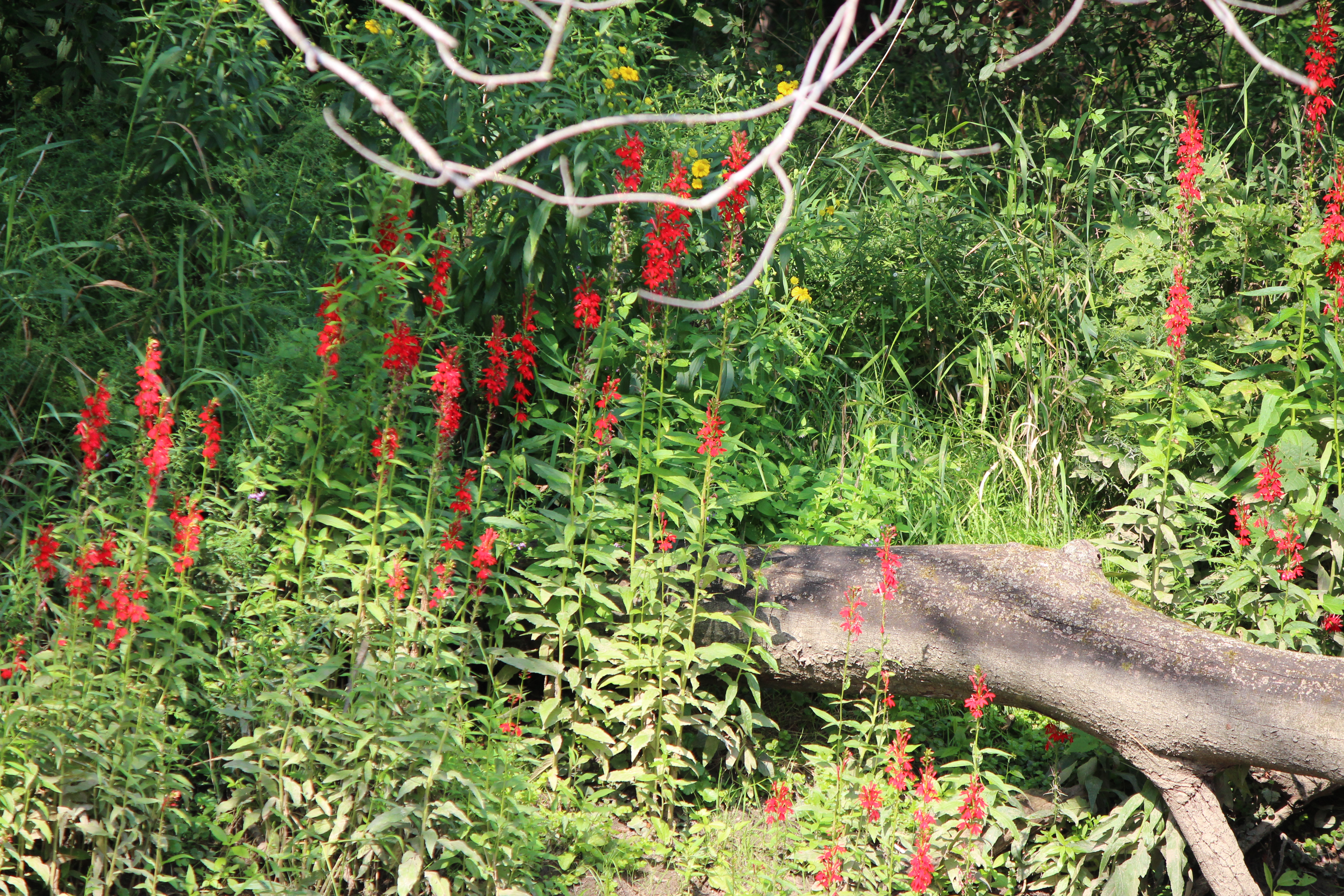 And it’s not just the nectar-eaters getting in on the action. Mosquito-nabbing ruby- and sapphire-colored dragonflies and damselflies hovered around the flowers like tiny, bejeweled helicopters.