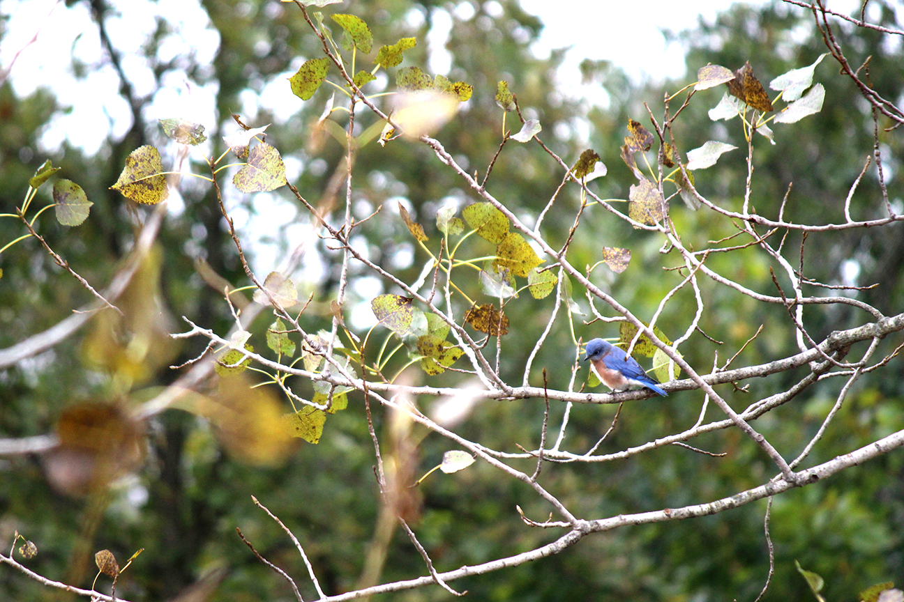 As we wound south through the open oak woodlands, we got, quite possibly, our last look of the season at the cerulean blue of a male eastern bluebird. A group of bluebirds was dashing this way and that in the skeletal branches of a cottonwood tree before heading out of town.