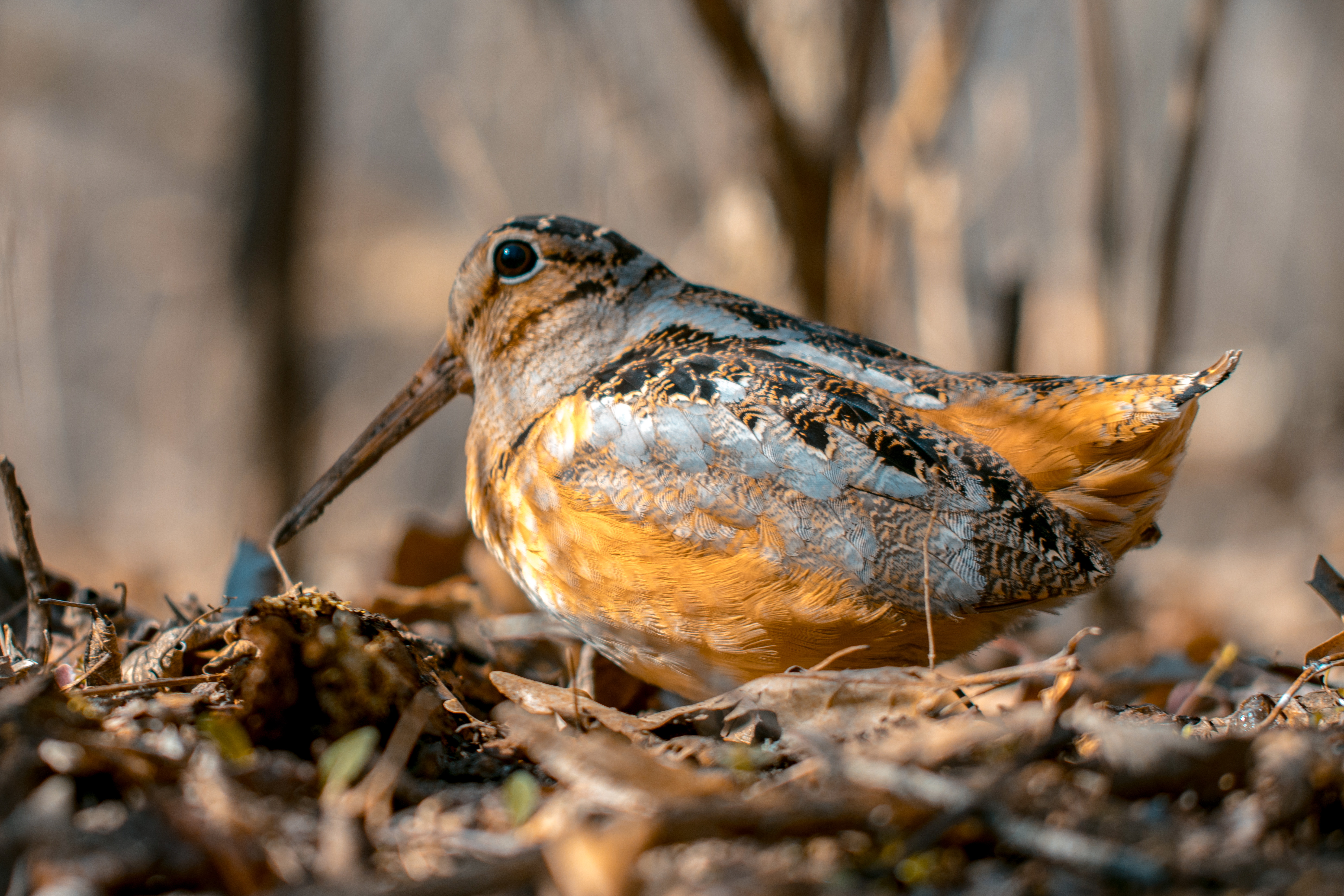 The American woodcock (Scolopax minor) is a curious species to study. Stock photo.