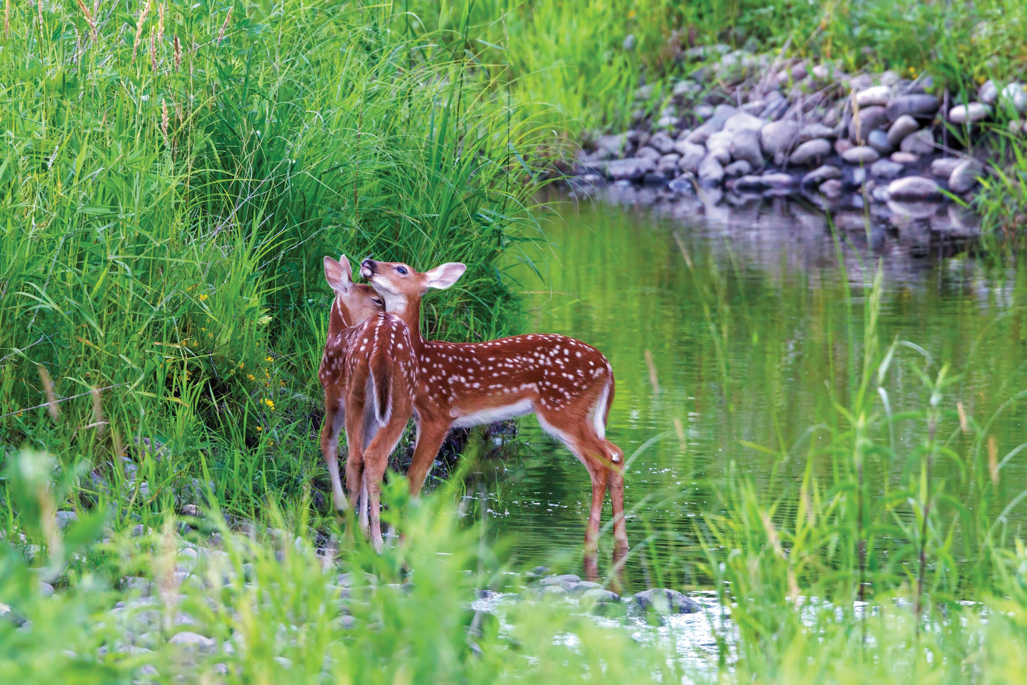 Photographer Dahai Zang snapped a fairytale scene at Buffalo Creek in Long Grove. These two white-tailed deer (Odocoileus virginianus) fawns sport hundreds of white spots on their rusty-brown coats. The markings help them blend into sun-dappled forests and meadows.